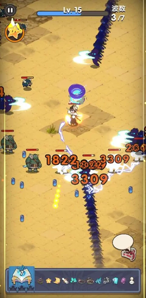 虽然不起眼,但冷不防出现且会一直黏着追的炸弹人是看板娘个人觉得最头疼的怪了。它们经常会出现在开局,很可能那会你还没有特别好的攻击手段。所以最好的办法是早获得一些可靠的远程或者击退技能,例如十字斩、激光等等,不然就只能以自己的走位躲过去了。另外,那些神秘的魔法书也会召唤炸弹,只要在他们召唤读条的过程中击败就可以了。