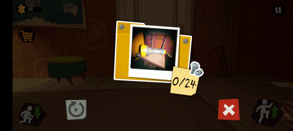1、首先打开你好邻居日记最新版正版,然后进入选择新游戏,注意你可以跳过游戏开始后的剧情动画,就会出现按钮介绍,左下角的是摇杆按钮控制角色移动,右下角则是跳跃和蹲下按钮,点击一下跳起来,长按则可以蹲下。