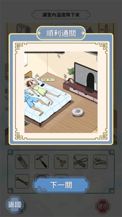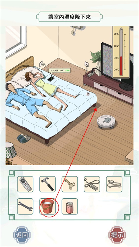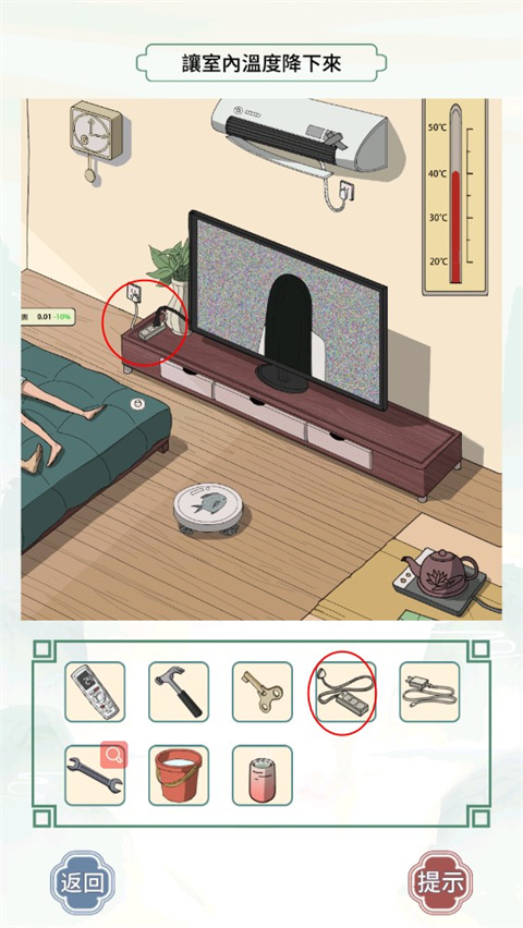 3、最后使用DV道具,点击时钟、床上的小孩、床上的垃圾、地面垃圾、电视机处即可通关