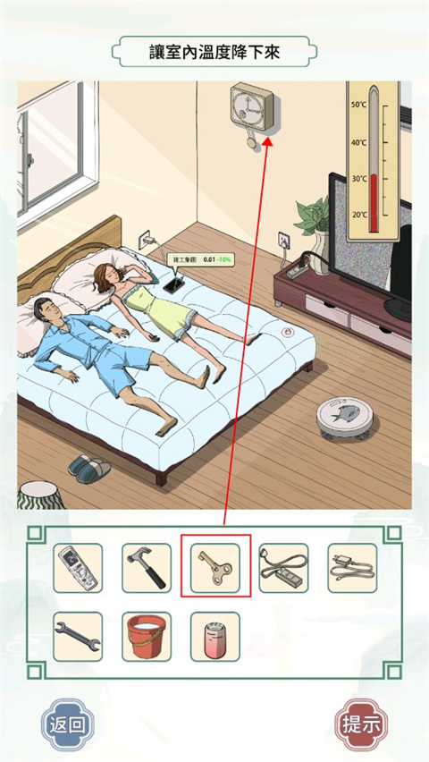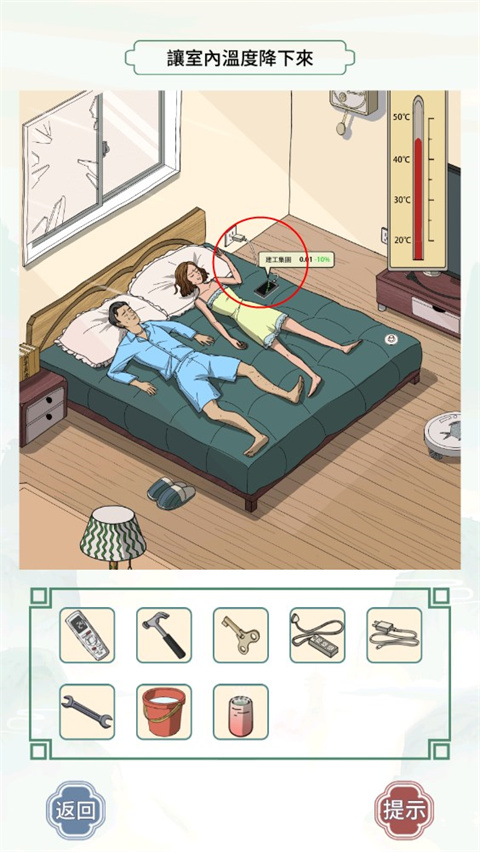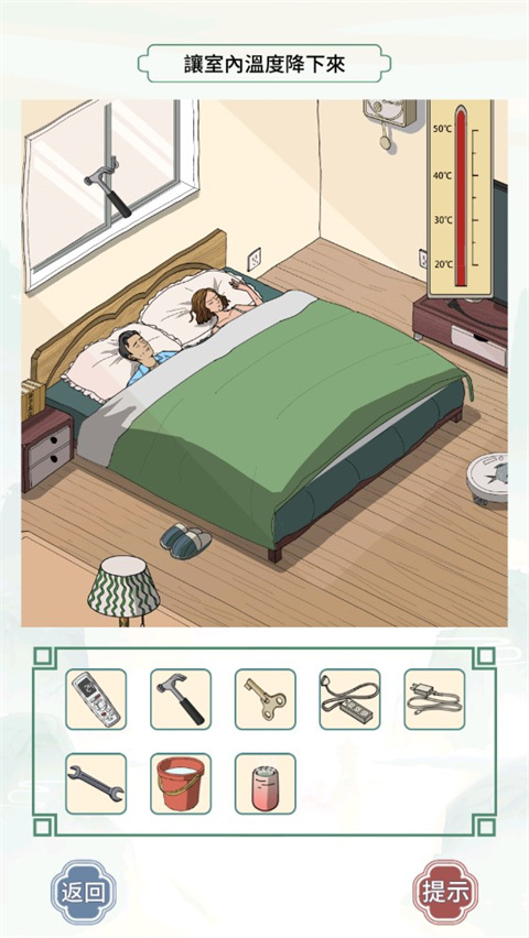 2、文字王者-燥热的大嫂让室内温度降下来,首先将锤子拖到窗户上,窗户破裂;