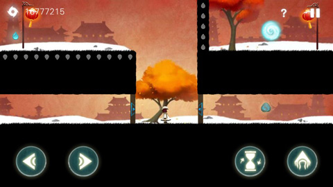 1、首先我们可以看到的是有平台出现,我们一定要注意自己的移动位置,玩家只要踩到平台然后没一会他们就会消失了,所以操作一定要迅速才行,首先通过下面的尖刺。