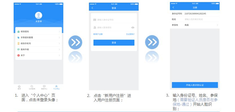 2、点击APP右下角的“个人中心”,点击未登录的头像,随后点击登录界面左下方的“新用户注册”,按照程序输入相应信息后,就会进入“人脸识别”环节。