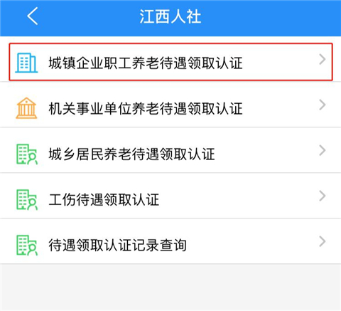 1、首页找到“待遇领取认证”点击打开,点击“城镇企业职工养老待遇领取认证”;