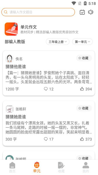 3、用户可自定义学习感兴趣的作文,用不同的角度写作文。