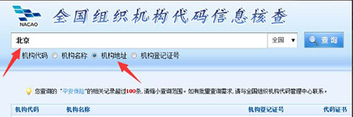 3、在全国组织机构信息核查系统中我们可以根据组织结构名称、注册地址以及机构登记证号来查询;