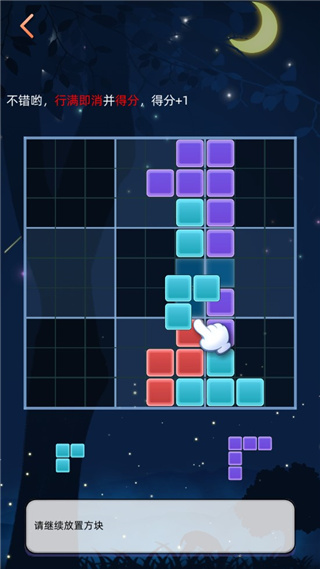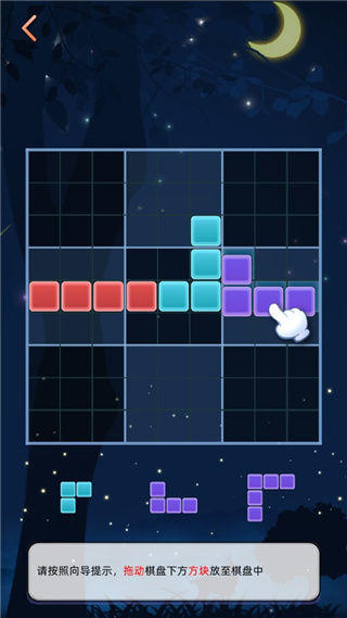 2、你需要将游戏自动输出的各种方块通过移动、摆放至棋盘中;