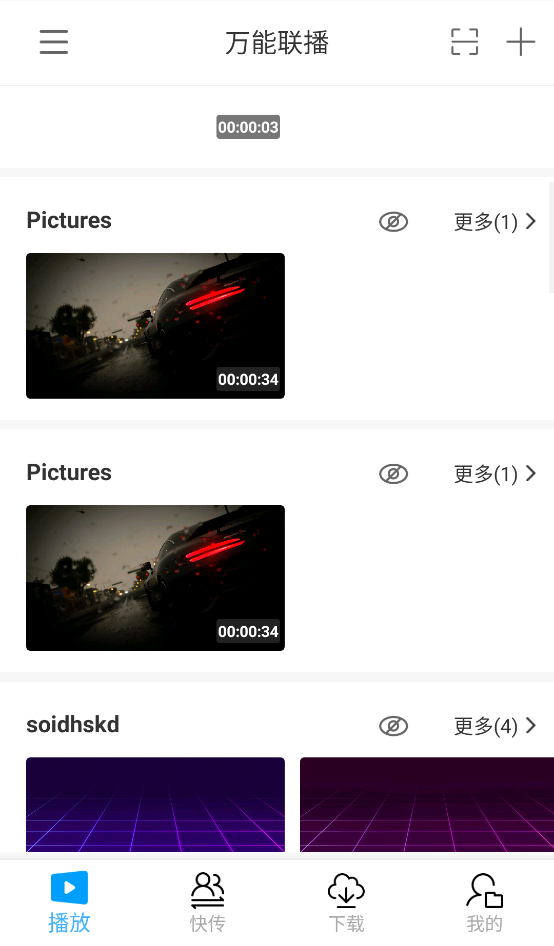 万能联播官方版可以帮助用户对手机存储的音频、视频、图片、应用等文件进行搜索、排序、删除等文件管理,同时会帮助用户形成一个共享圈,邻近分享任意长度视频、任意格式音乐、图片等资源到附近,比微信朋友圈可分享的内容形式更为丰富,并且支持卡片式浏览视频资源。