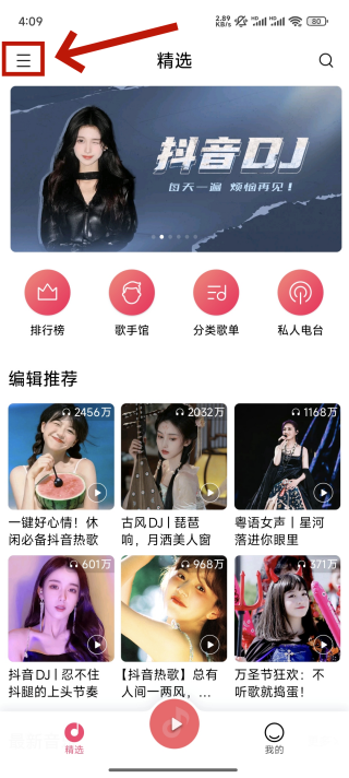 1、打开小米音乐app,进入软件首界面,点击如图所示的标识