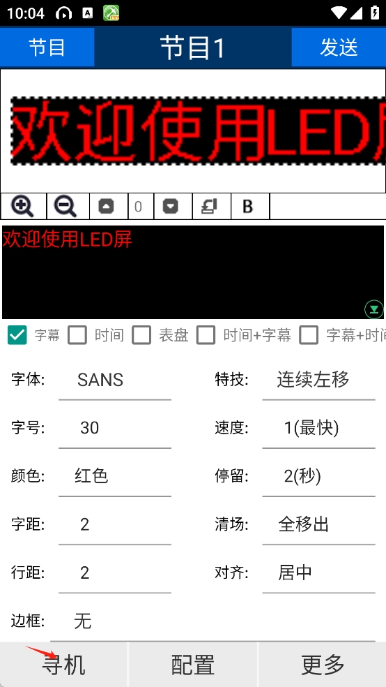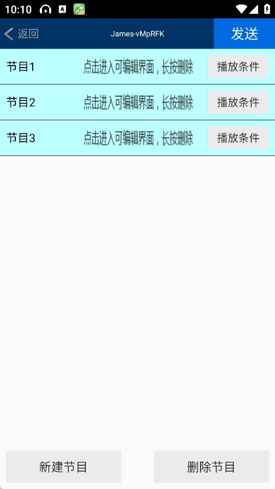 如果你需要多节目,就点击左上角节目,进入节目界面。点击新建节目,然后点击你新建的节目条,进入主界面编辑内容,同第三步操作。完成后直接点击发送按钮。