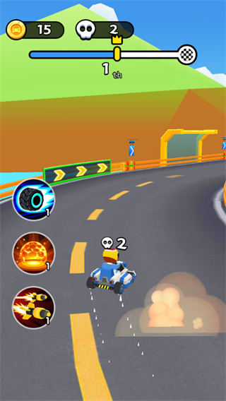 赛道上可不是风平浪静,除了赛车之间可以互相对抗撞击以外,随机出现的路障、炸弹、龙卷风、甚至于从天而降的陨石都无时无刻在考验着你的临场反应能力!