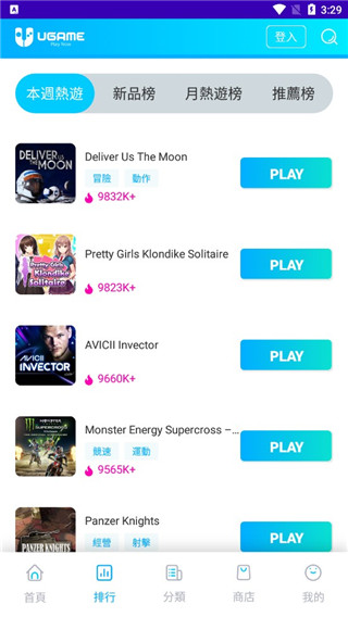 3、在排行榜中会为你推荐本周热游、新品、月热游等榜单游戏;