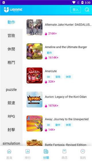 5、你还可以在分类中选择你要玩的类型,冒险、动作、角色扮演、竞速和对战等多种种类任你选择;