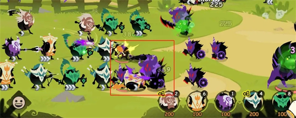 因此将生存型库库姆放在在最外面,就可以最有效地将怪物阻挡在远处,保证阵容的持续输出。