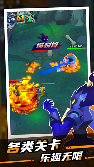 1、硬核战斗技能设定,爽快感爆炸。400关主线关卡,挑战无止境。