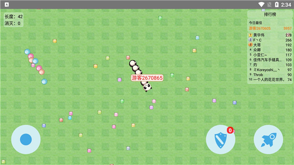 3、你需要不断的拾取地图中的光点,以此让你的小蛇长大;