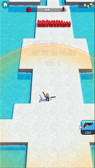 如果你想在闲暇时间体验一款休闲射击类手游,那么小编推荐这款突突冲锋队(Bullet Rush),这是法国游戏商Voodoo发行的一款非常治愈解压的休闲射击小游戏。游戏画风一如既往的采用了低模风格打造,大量关卡集成的魔性挑战玩法,可让你根本停不下来,丰富的射击细节,流畅的动作,还提供了简洁的枪支体系,在摒弃了众多背景元素之后,简化了游戏的动作射击体验,以较为宽松的游戏氛围迎合着各种玩家。虽然是射击游戏,但是你无需担心自己是个手残党瞄不准目标,因为你无需瞄准目标,随便的向敌人疯狂扫射就可以击倒敌人,简单粗暴的玩法增加你对游戏的信心。
