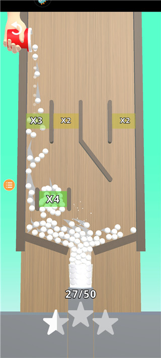 游戏的操作也非常的简单,没有任何难度,玩家只需要点击屏幕移动到指定的通道即可,小球会在遵循物理特性下落的过程中会自动经过翻倍杠杆从而生成大量的弹跳球,通过杯子将这些小球接住,完成关卡。