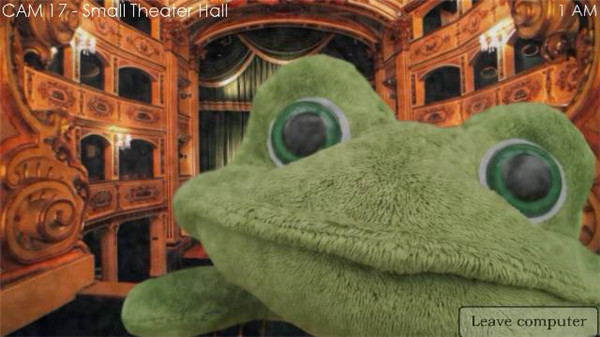 3:00现在很多玩具。开始动了太可怕了!3:25监控02的青蛙(毛绒)他又来了。当他进去时,他走啦。原来他不会去。第二个房间。那就简单了。通风管道。登登登的响。还是别管了!第三天的管。4:35龙来啦!赶紧按住门。5:00青蛙(毛绒)来了他又走了。龙来了赶紧按住门。他走啦。5:14赶紧的。5:45快赢啦!龙又来了。赶紧按住门。他走啦,5:59,6:00,赢啦。
