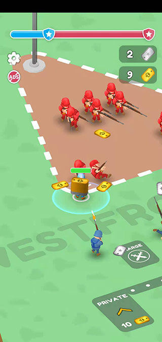 5、击败敌人后可获得金币,继续收集金币,以此招募更多的小兵!
