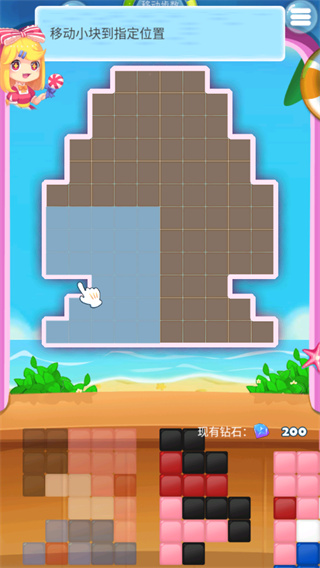 3、游戏中玩家需要拖动游戏下方的方块移动到指定位置,将所有的方块填充完毕即可通关;