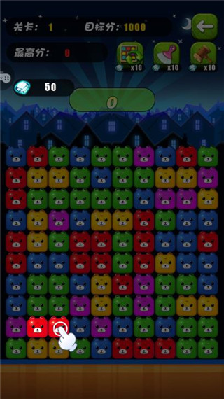 1、和消消乐一样,两个及以上的熊熊即可消除,单指操作哦