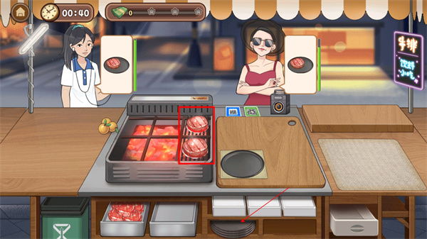 1、下载进入街头牛排游戏,首先我们需要根据顾客的需求制作牛排;