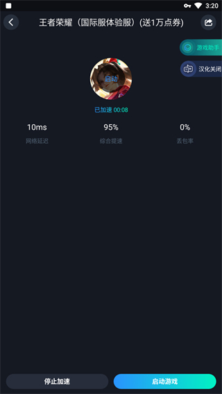1、在本站下载王者荣耀国际服体验服游戏以及cc加速器之后,然后打开cc加速器,找到王者荣耀国际服体验服,点击加速进入游戏;