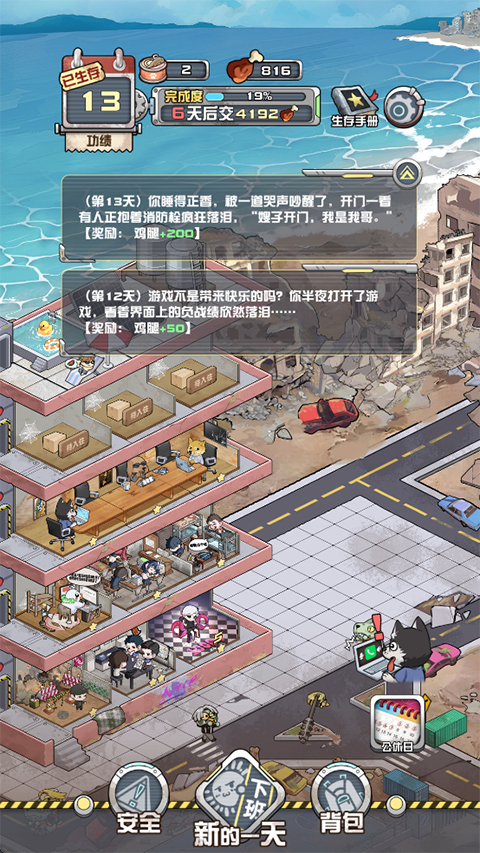 我在末日当房东是一款以末日为背景的背包肉鸽手游,玩家将在游戏中成为末世的房东,通过收留其他性格、技能互异的幸存者,来组建一支抵御丧尸的小队,在末世躺平赚物资。