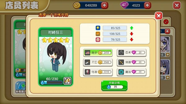 通过训练选项可以提升店员的三项工作属性,不仅能提升工作效率,也可以在店员评比中得到更高的评分