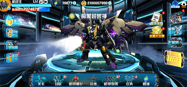 现在提供的合体机甲共有4款,分别是来自《果宝特攻》世界的果宝战神、《快乐酷宝》世界的雷霆战宝、《钢铁飞龙》世界的巨龙六合体、《超兽武装》世界的超兽神合体。