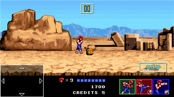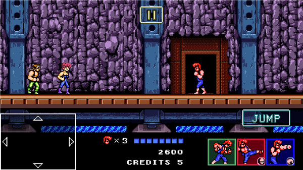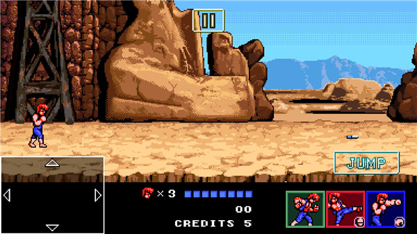 不仅如此,双截龙4安卓中文版还为许多老玩家完美复刻了游戏独特的背景故事和玩法内容,并且是以推图闯关、地下成作为核心玩法,因此在这里玩家可以体验到最爽快的战斗场面,流畅连续的连招动作展现出来。此外本游戏在保持移动端操作便利性的基础上,还融合了街机的搓招模式达成浮空、眩晕、硬直等各类效果,同时配合各种技能释放进行华丽炫酷的连招操作,同时更是有着双截龙中的经典角色悉数还原以及8-bit的画面风格和经典的游戏玩法来感受原汁原味的双截龙游戏体验。