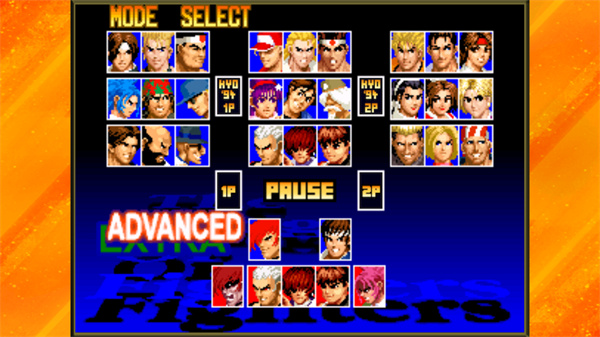1、《拳皇97》提供了ADVANCED和EXTRA两种战斗模式供玩家使用,不同的战斗模式在采取相应行动时存在不同的动作与特性,其中EXTRA是对《拳皇94》、《拳皇95》系统的继承,ADVANCED则是《拳皇96》新登场的战斗模式。玩家需在角色选择前进行相应的战斗模式选择方可进行队伍角色选择;