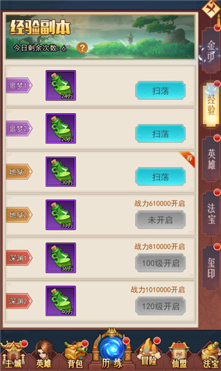 每次通关都能获取大量的经验奖励,通关的越多,离线获得的经验也更多。