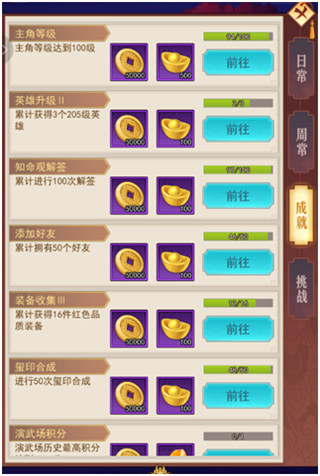完成指定的成就就能获得大量元宝,有些成就很容易就能完成啦,快去看看吧!