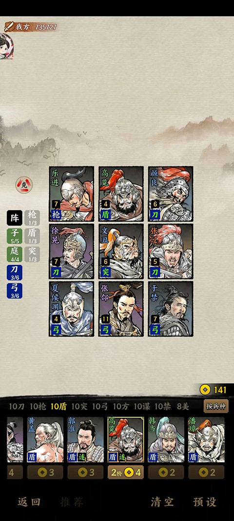 名将之弈游戏中目前主要分为三个兵种阵营:步兵,骑兵,远程,三个大阵营之间存在闭环克制关系。而抛开兵种的克制,如何正确选择更通用的阵容开荒?小编现在粗略总结了一下,希望对大家的开荒及集卡有所帮助。