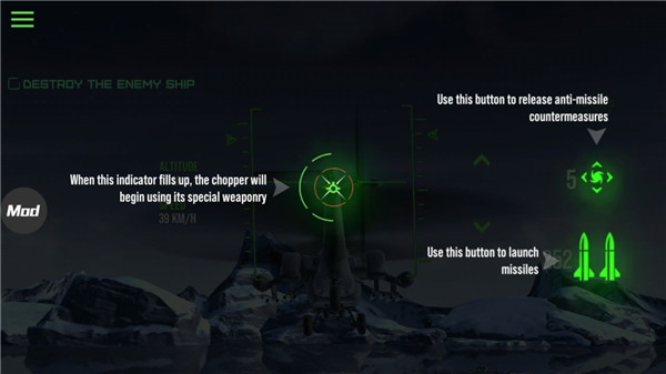 2、感受各种不同的驾驶操作,体验不同型号的武装直升机,享受刺激的飞行体验