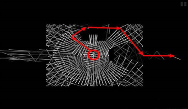 4、最后看到图中中的粗线条白色声音反弹时,就代表门近在咫尺,勇敢的打开门逃离黑暗吧!再利用回声的图像来判断迷宫的道路,最终走出迷局!