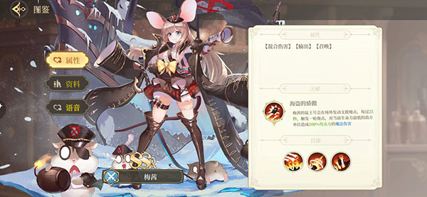 后排混伤,小技能都是物理,大招居然是法伤,一技能砍一刀伤害巨低然后召唤0-2只仓鼠。。。。你懂的,大招群体法伤伤害一般。。。还没控制,定位尴尬的角色。
