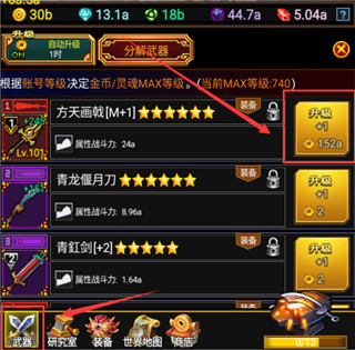 点击左上角的自动升级,可以选择武器开启自动强化功能。