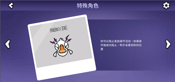 超能力 :你可以阻止某些破坏活动,如果破坏被阻止成功,鸭子会看到你的位置。