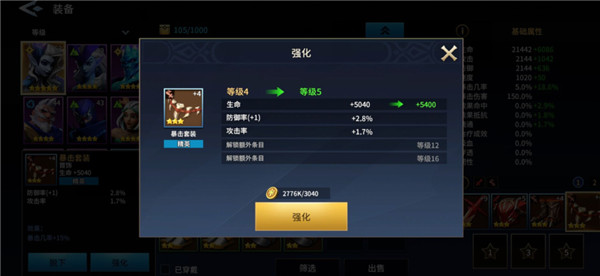 装备方面增加了一个词条设定,每当强化至一定等级后,将会解锁一个额外的随机词条,包括速度、暴击、攻击等属性。