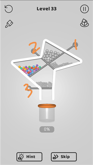 别针大师游戏是一款由Popcore GmbH游戏厂商打造的物理类益智休闲手游,游戏玩法十分简单易上手,动动手指即可完成所有操作。别针大师游戏需要运用一定的物理知识,将小球收集到一起,从上方往下掉落的小球,利用别针来避开各种道具,注意,不要在中途损失数量哦,当您安全抵达瓶口即底部时,恭喜您,您已成功通关。卡通画风、非常的小清新,新奇有趣的玩法,极度解压。除此之外。游戏画面采用清一色的卡通风展开,过程有着很多丰富性的特色关卡等你来闯关,看似简单的操作同时也会有些难度,因此你需要好好开动自己聪明的小脑瓜哦,感兴趣的朋友快来下载吧!