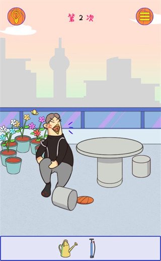 第二关:点击水壶浇没有开花的那一个花盆,然后拿打气筒给篮球打气。