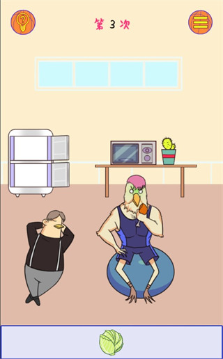 第三关:点击冰箱里面的鸡腿给健美鸡,需要先放微波炉加热一下再给健美鸡哦!然后得到瑜伽球。把瑜伽球塞进食人花嘴巴里。