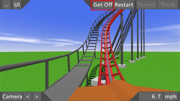 6、当我们建造好过山车后,点击"Ride"按钮,我们可以体验第一人称的刺激感;