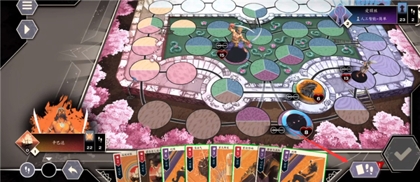 4、攻击结束后,我们的回合移动你的伙伴位置,并选择卡牌进行攻击;