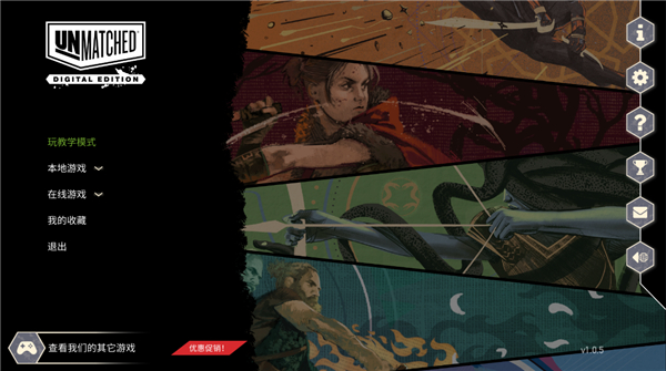 无双对决数字版手游(Unmatched)是改编自同名Steam游戏移植而来的一款策略桌游模拟游戏。在这款游戏中,玩家们需要选择两个(或更多)对手指挥着神话、历史或小说中的角色,为时代而战!你有没有想过谁会赢,亚瑟王(与助手梅林)还是仙境中挥舞着剑的爱丽丝?辛巴达和他值得信赖的搬运工乘客将如何对抗美杜莎和三个女妖?找到真相的唯一方法是快速玩一盘Unmatched战斗游戏!因此每个玩家需要命令他们的英雄和伙伴,使用一副独特的纸牌,在战场上击败他们的对手。但需要重要的是,每个英雄都有独特的牌组和能力,爱丽丝可变大变小,亚瑟王可以弃一张牌来增强其攻击,辛巴达随着航行次数的增加会变得越来越强大,美杜莎只需一瞥就能毁了你。
