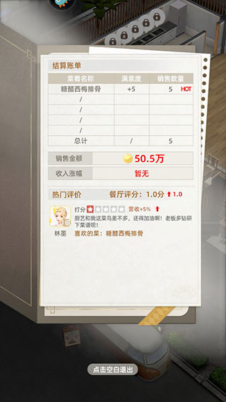 10、在我们经营到一定时间后,会有许多美食家来挑战我们,挑战成功后,我们不仅可以获得新的菜单,也有可能会吸引到新的合伙人。