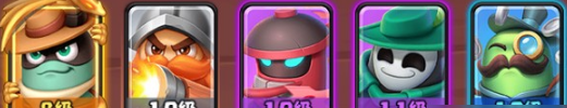 推荐英雄组合:恶魔猎人(替补御风者、热能恐龙、快枪牛仔、野射手)+火枪手+血镖忍者+无面怪杰+黑市商人。