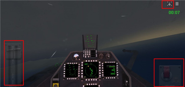 本作只是一个模拟起降的游戏,所以并没有那么复杂的操作,玩家们利用重力感应控制飞行方向,而屏幕左右下角各有一个滑档的按钮,左边控制速度,右边则控制起落架的放下与升起。每一次的降落都需要利用好速度与起落架的配合才能完成,很考验大家对整个战机的控制能力。